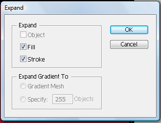 Agora vamos separar o contorno do preenchimento, para isso entre no Menu Object / Expand.